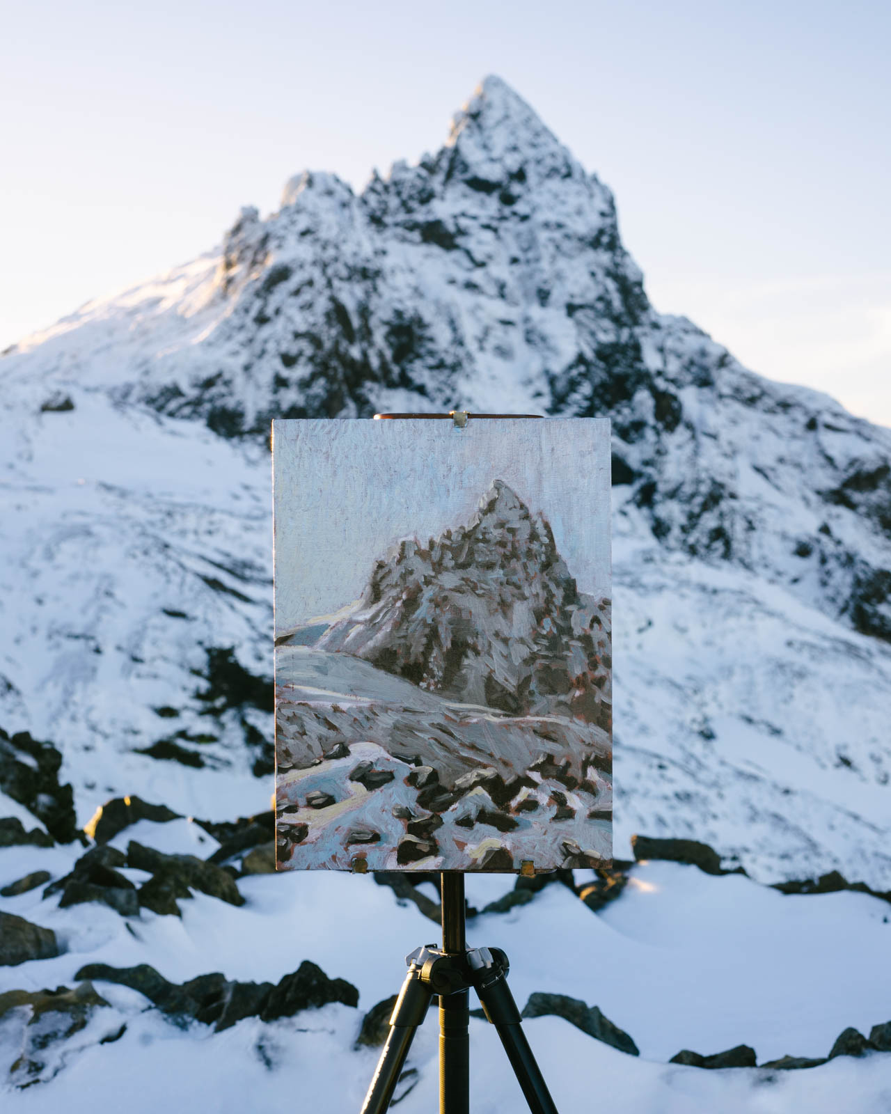 Mientras exploro y pinto las cordilleras del Wallmapu, mi hermano Franco observa y escribe desde Santiago.